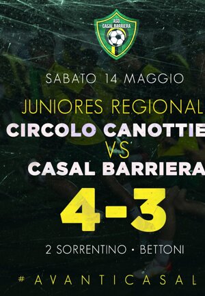 Il Casal Barriera in formazione rimaneggiata, viste le squalifiche di Corrado e Casertini, gli infortuni di Melis A., De Nicola, Bettoni e ragazzi reduci da malanni vari, gioca una partita tutto cuore e corsa ma che non basta per portare a casa il risultato. Le reti segnate da Onofri, Gabriel e il solito Sorrentino.