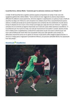 Anche Davide Follo resta al servizio del Casal Barriera dimostrando grande appartenenza al progetto gialloverde nonostante un’ultima annata davvero complicatissima anche sotto il profilo personale. La società ha deciso di puntare sull’attaccante classe 2000 che da parte sua ha tantissima voglia di rivalsa. "L’ultimo anno non è andato come tutti speravamo – dichiara - anche a livello personale purtroppo sono potuto scendere in campo tre o quattro volte a causa dell’infortunio al ginocchio. Proprio per questo vogliamo essere molto più che presenti nella prossima stagione e il lavoro che il presidente D’Alonzo e il direttore Melis stanno facendo è un chiaro segnale che vogliamo tornare protagonisti. I giocatori che stanno arrivando sono sicuro che ci aiuteranno, l’obiettivo è quello di puntare in alto e riprenderci subito ciò che abbiamo perso. Anche a livello personale spero di dare un grande contributo al Casale e di ripagare la fiducia dimostratami nonostante un anno difficilissimo. Le sensazioni e gli input che la società sta dando sono senz’altro positivi, anche noi che siamo rimasti ce la metteremo tutta per riportare la squadra in Eccellenza".